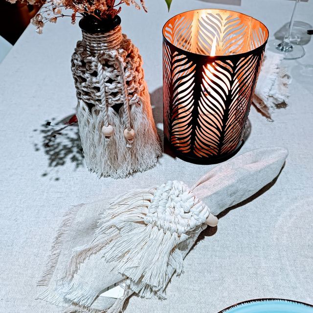 La touche macramé s'étend même dans vos assiettes ! Ces magnifiques ronds de serviette apporteront un look bohème et naturel à votre table ! Fait main.